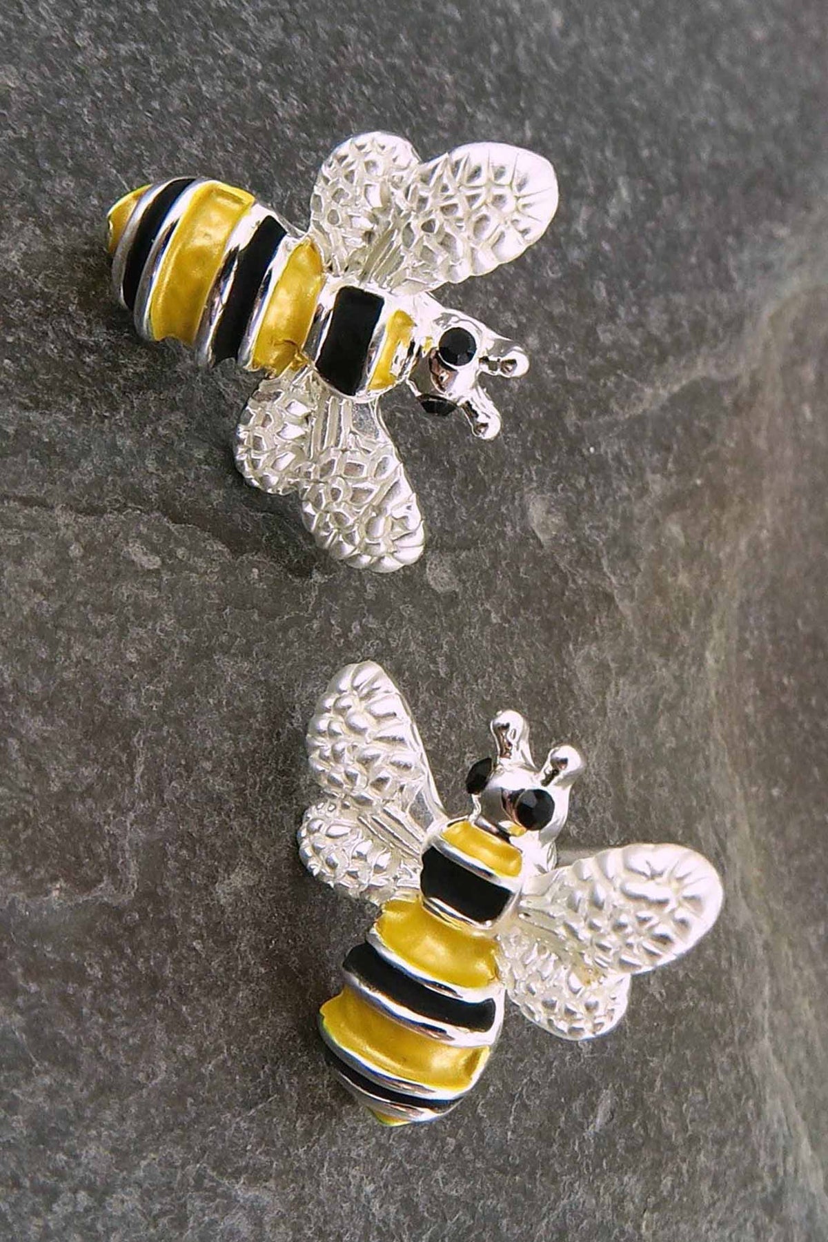 Alexander Thurlow Enamelled Bumble Bee Silver Tone Stud Earrings