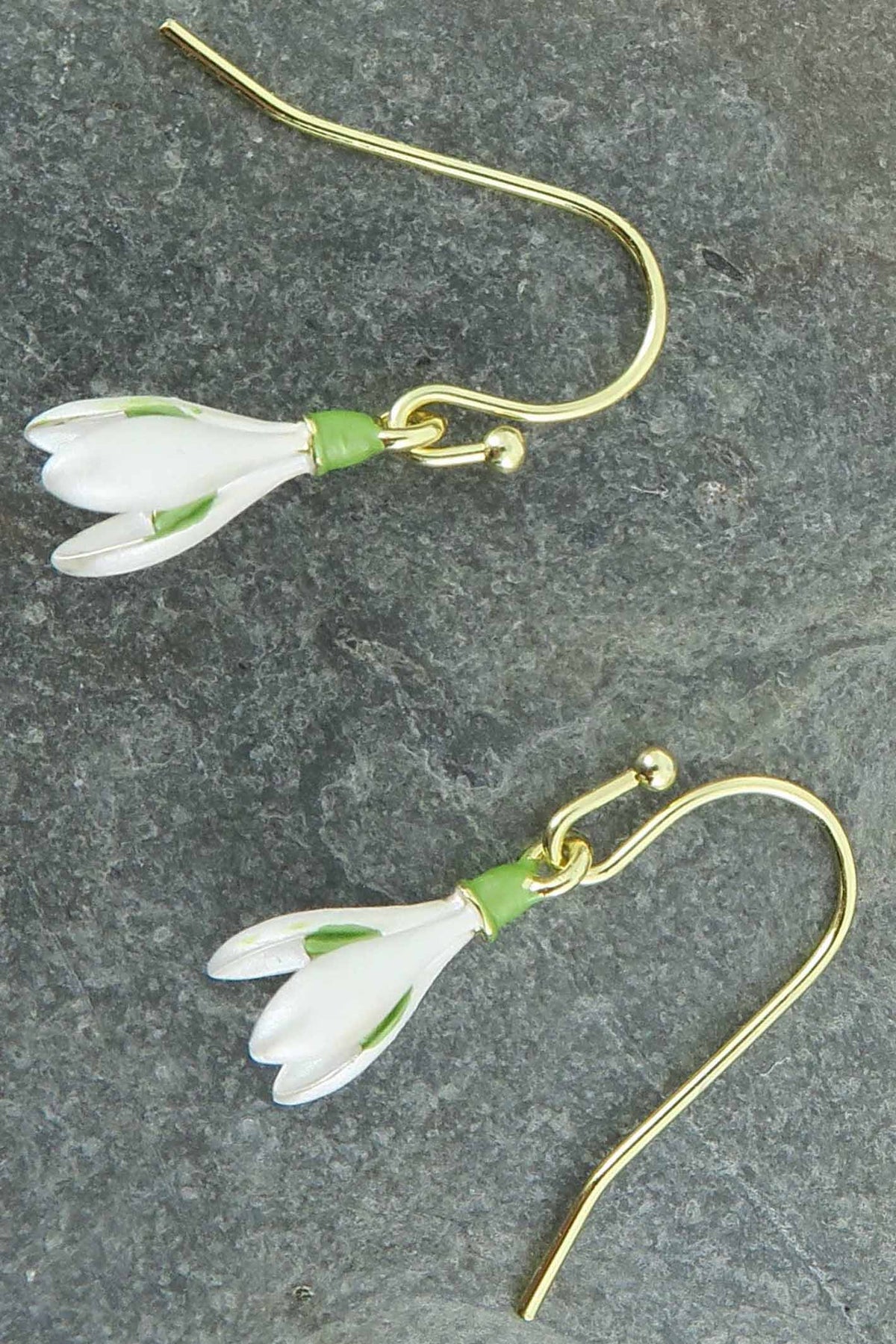 Alexander Thurlow White Enamelled Snowdrop Flower Drop Hook Earrings