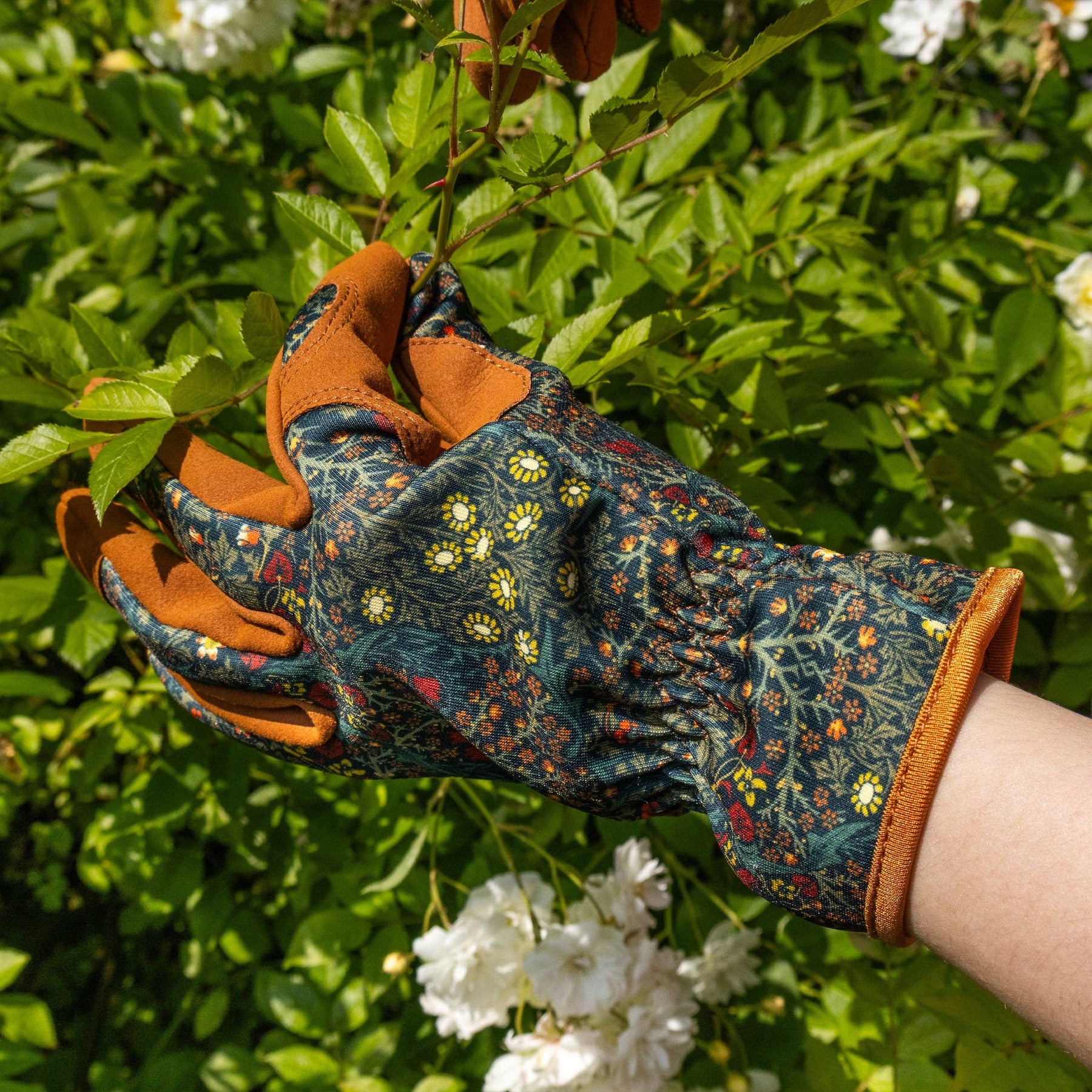 Shaped in a one‑size fit tailored for women’s hands, they offer a natural, flexible feel that moves with you as you prune, plant, and potter. The cushioned palm softens the impact of thorns and rough stems, while the snug elastic wrist keeps soil and debris firmly out. A textured inner grip ensures tools stay steady, even during longer sessions. Durable, washable, and effortlessly elegant, they’re a joy to wear season after season.