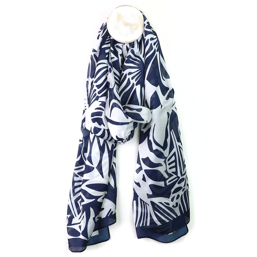Pom 53211 Navy Recycled Silky Tropical Leaf Print Scarf